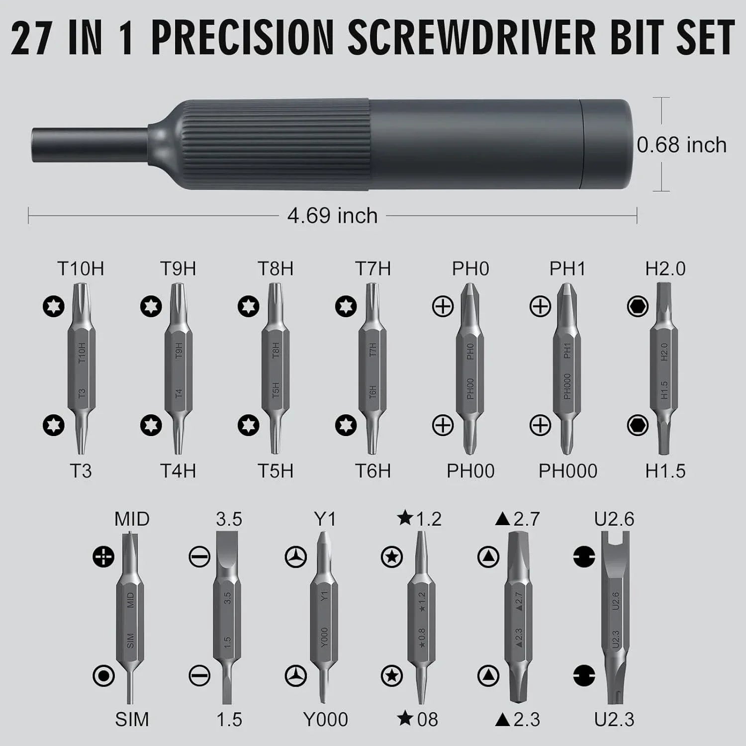27 in 1 Precision Screwdriver Set Magnetic Bits Pen Style Manual Repair Tools Kit for Eyeglass Watch PC Jewelers Laptop iPhone