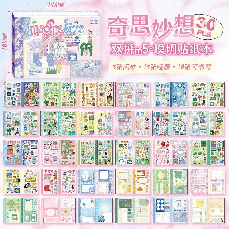 Kawaii Dual M5 Sticker Book Ins Korean Style Cute Cartoon Decorative Stickers Romantic DIY Handbook Scrapbook School Supplies