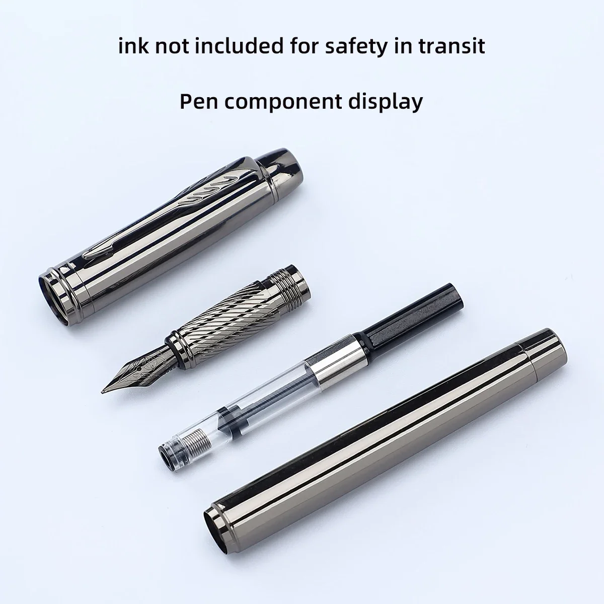 1 piece, silver gray high-end business metal pen, Iridium pen tip medium size 0.5mm, the best fountain pen for men and women in office school students, with ink converter, without ink, suitable for 3.4 caliber ink bladder