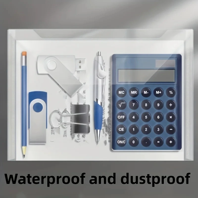 20Pcs Plastic Envelope Transparent Waterproof Reusable File Bag with Buttons A4 Size Student Information Storage Folders New